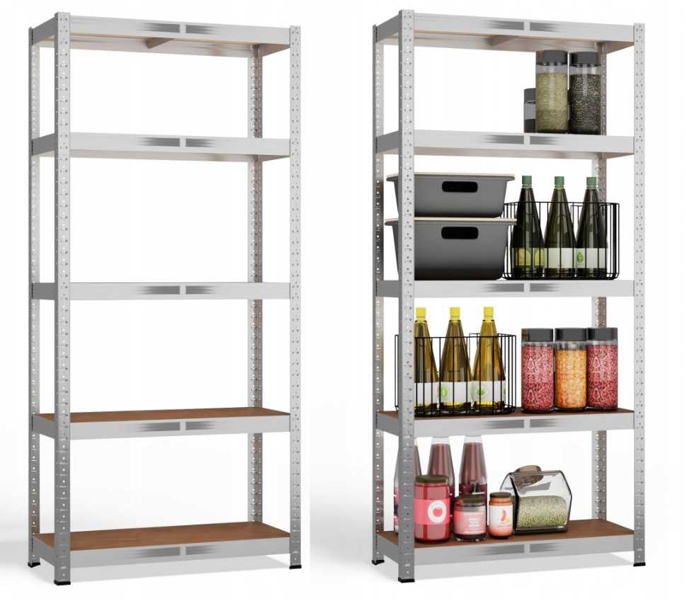 Стелаж складається з 5 полиць із товстої плити МДФ, завдяки чому на кожну полицю можна ставити товари вагою до 175 кілограмів! Посилений сталевий профіль забезпечує чудову стійкість і безпеку предметів, що зберігаються.